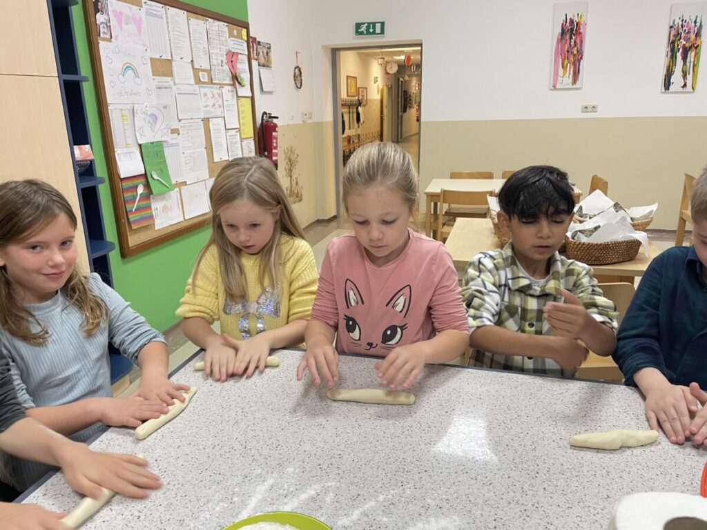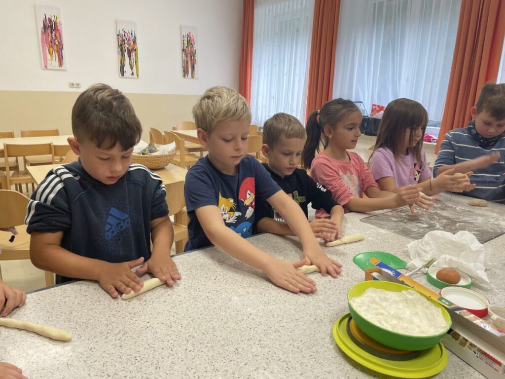 Hier wurde mit eigenen Händen Teig geknetet und Karottenbrot geformt. Der Duft frischer Brötchen begleitete uns durch den Tag!