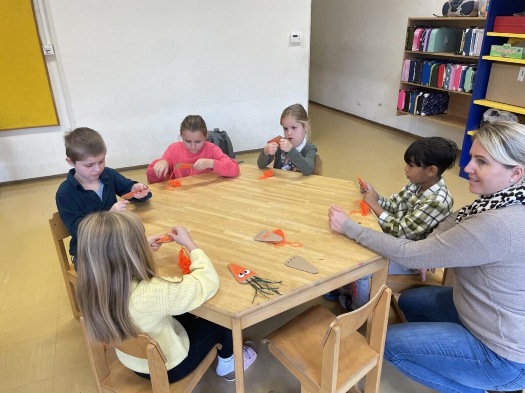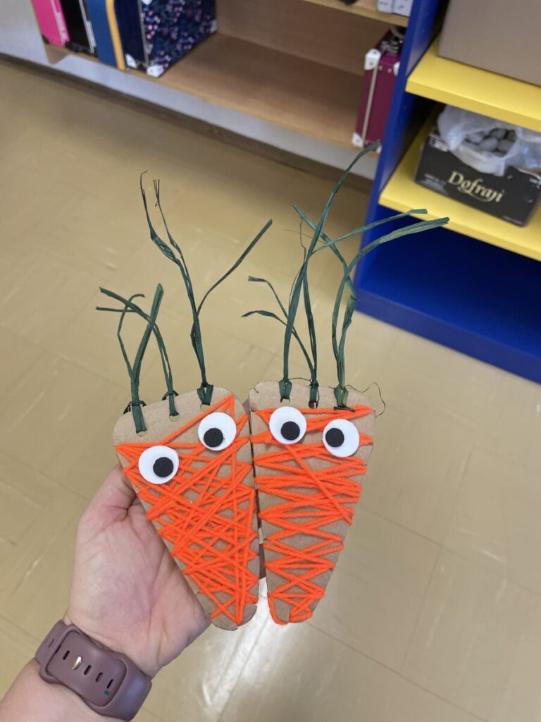 Mit buntem Papier, Wolle und Fantasie entstanden großartige Lesezeichen in Karottenform – ein kreatives Andenken zum Mitnehmen.