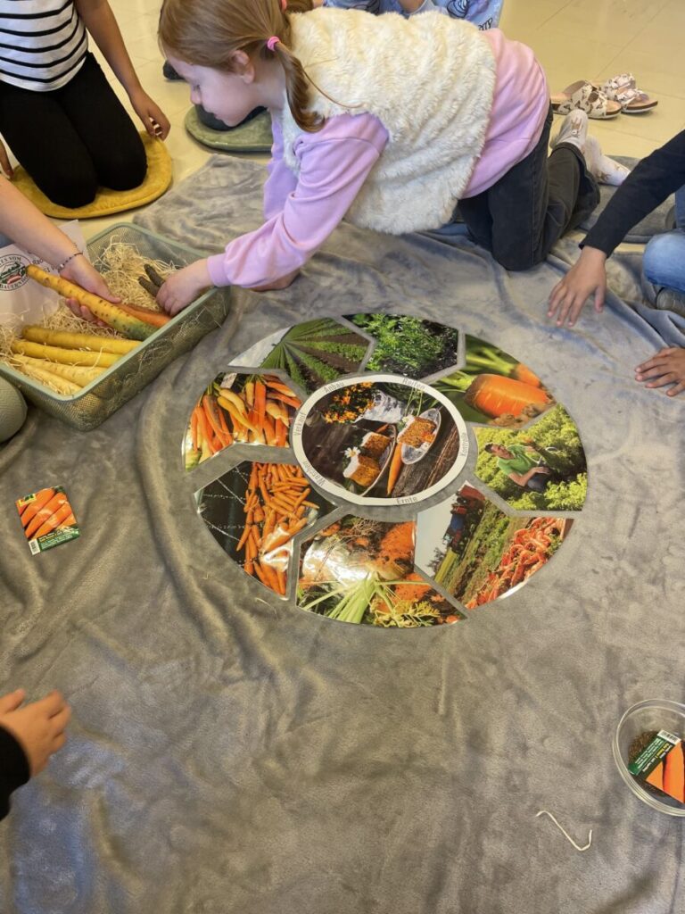 Nicht nur orange! Die Kinder lernten verschiedenste Karottensorten kennen – in Gelb, Lila, Weiß oder sogar kugelig geformt. Natürlich durften sie auch probieren!