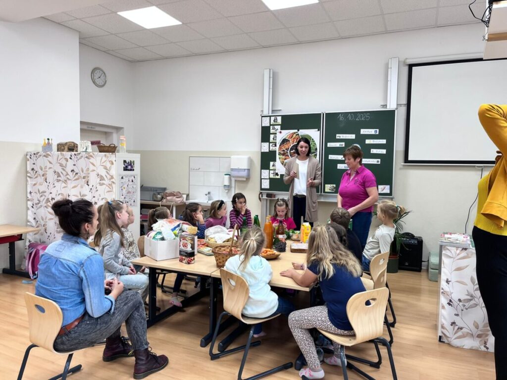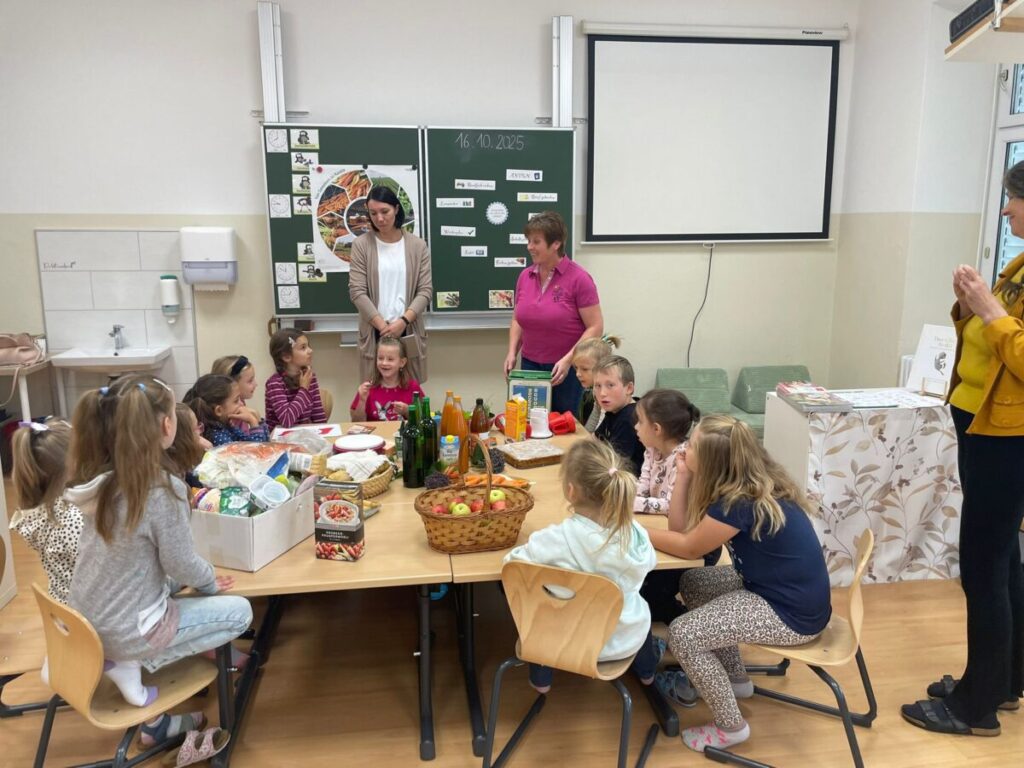 Am 16. Oktober 2025 besuchten die Ortsbäuerinnen Monika Malli und Nicole Paulitsch die Volksschule St. Oswald ob Eibiswald. Gemeinsam mit den Kindern der 1. und 2. Klasse widmeten sie sich der Karotte – ihrem Anbau, ihrer Bedeutung und ihrer vielseitigen Verwendung in der Küche.