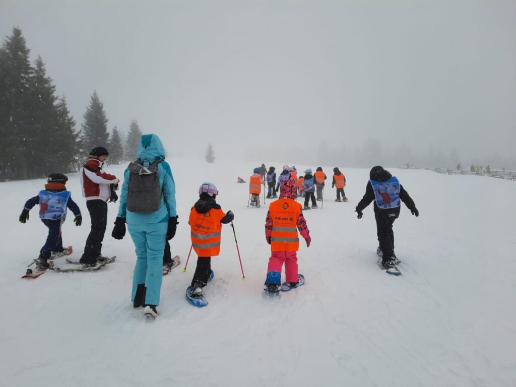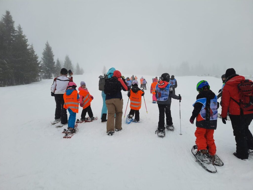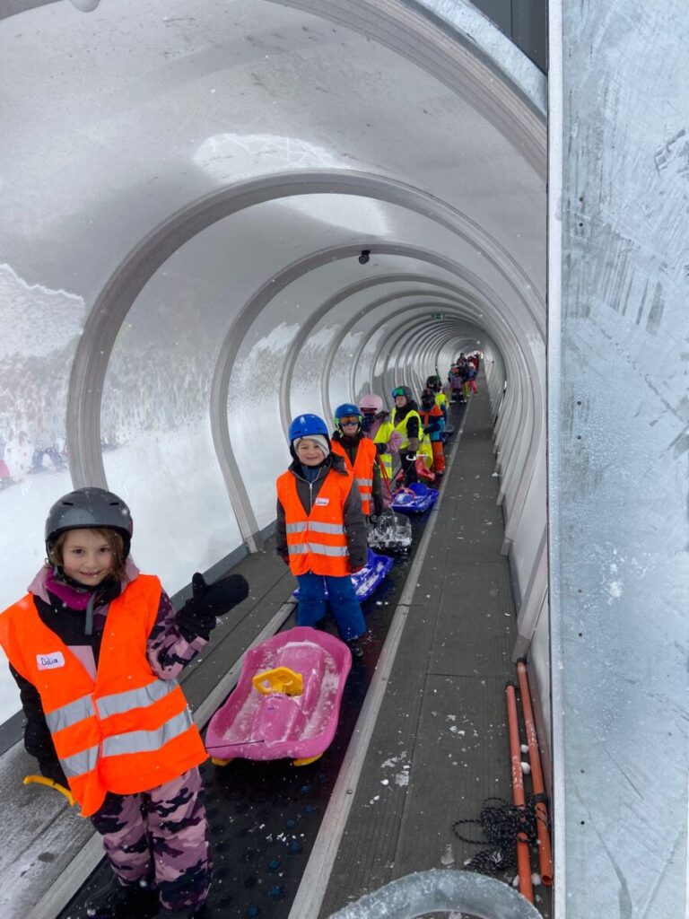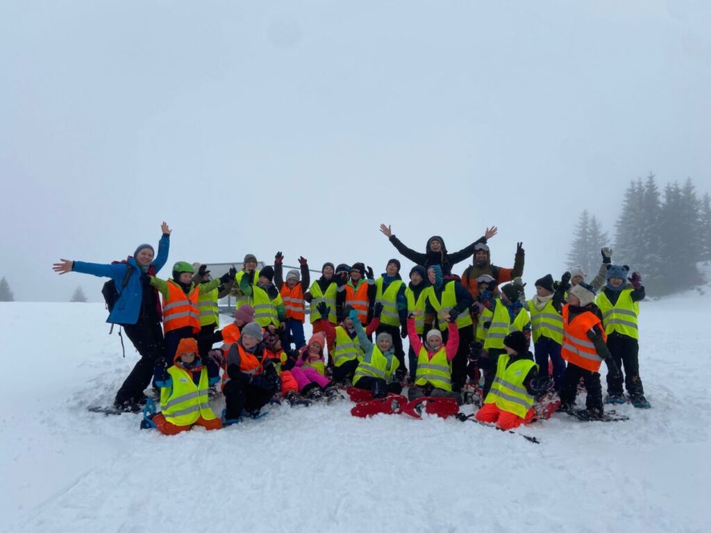 Der zweite Bewegungsschwerpunkt des Vormittages lag auf dem Bobfahren und dem Schneeschuhwandern. Auch diese Gruppen nutzten die perfekten Schneebedingungen intensiv aus. Viele Kinder marschierten das erste Mal mit Schneeschuhen. Und es machte ihnen sichtlich Spaß!